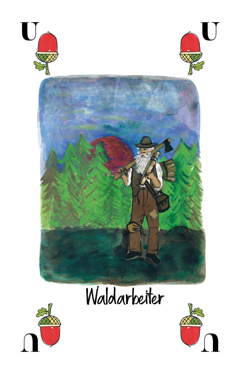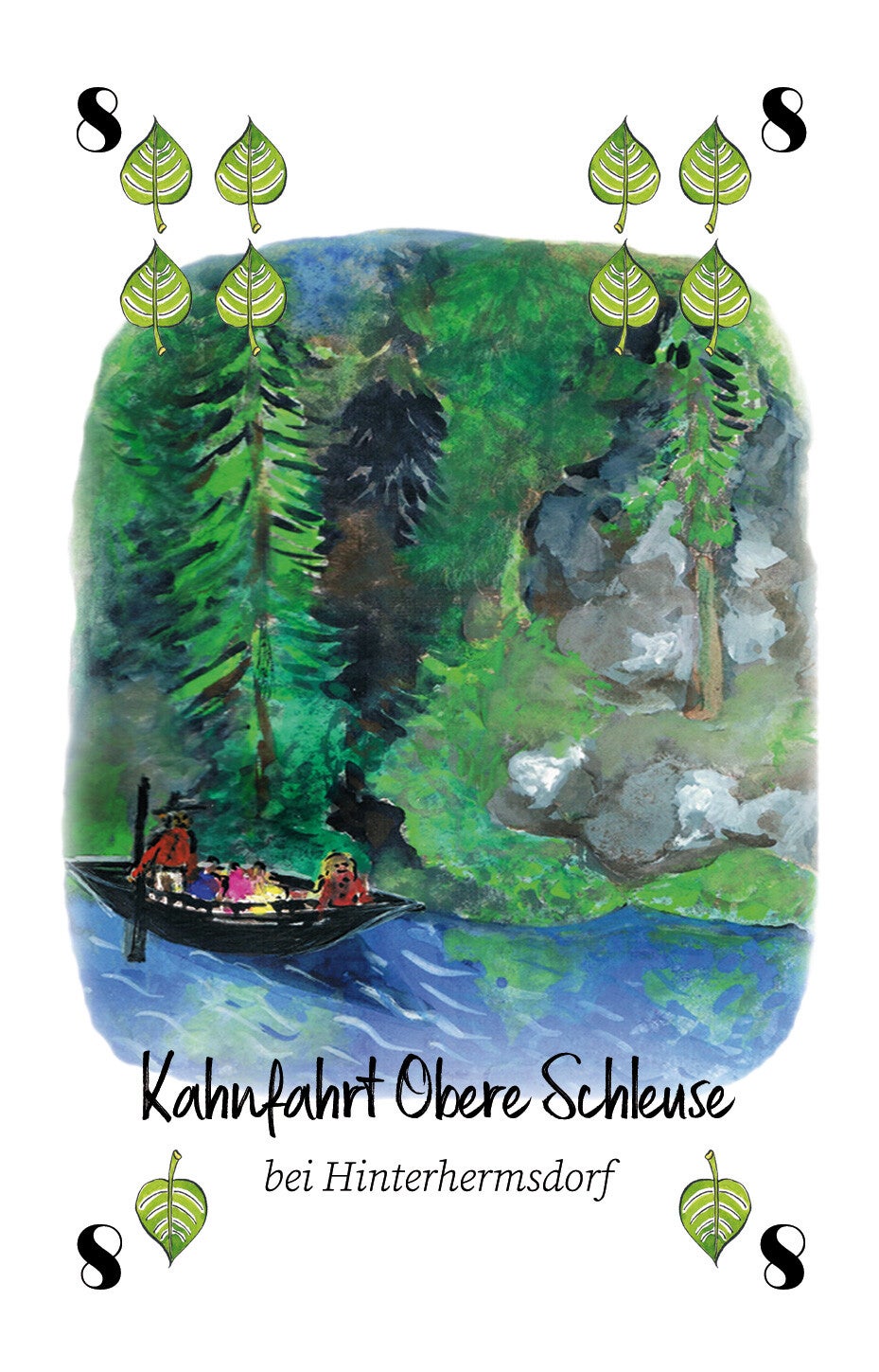 Jede Spielkarte trägt eine liebevoll gezeichnete Farbillustration gebietstypischer Motivik.
